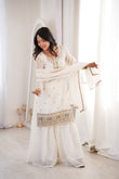 White Clour Heavy Soft Crunchy Silk Kurta Sharara Set